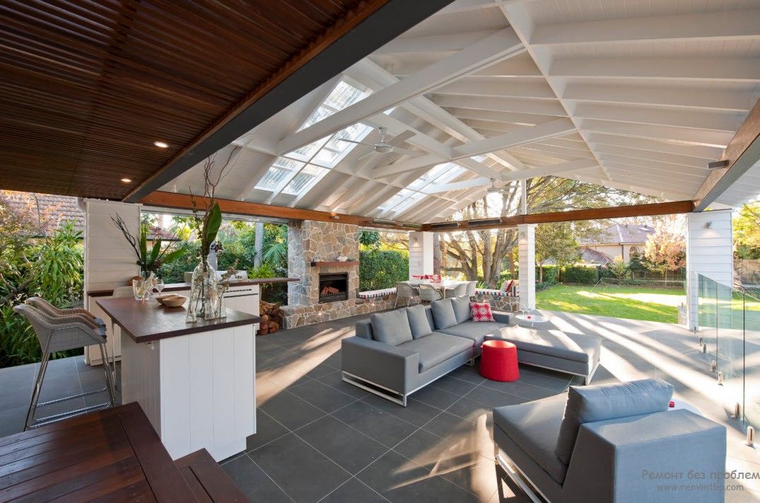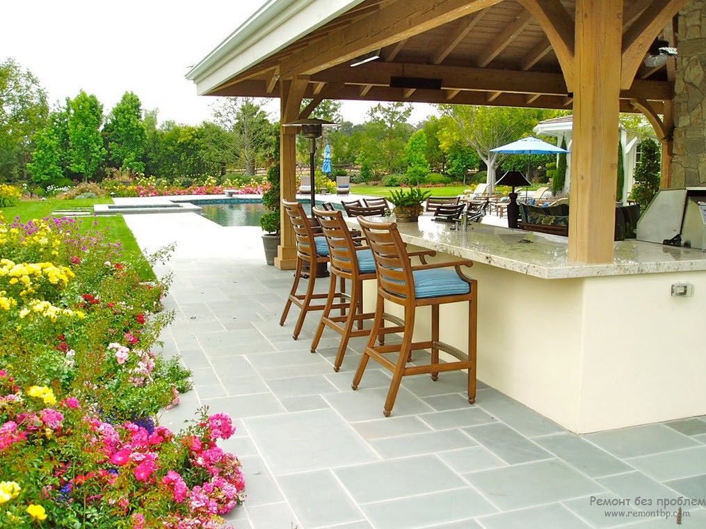 Характерная черта беседок-барбекю – разделение на зоны приготовления пищи, трапезы и отдыха
