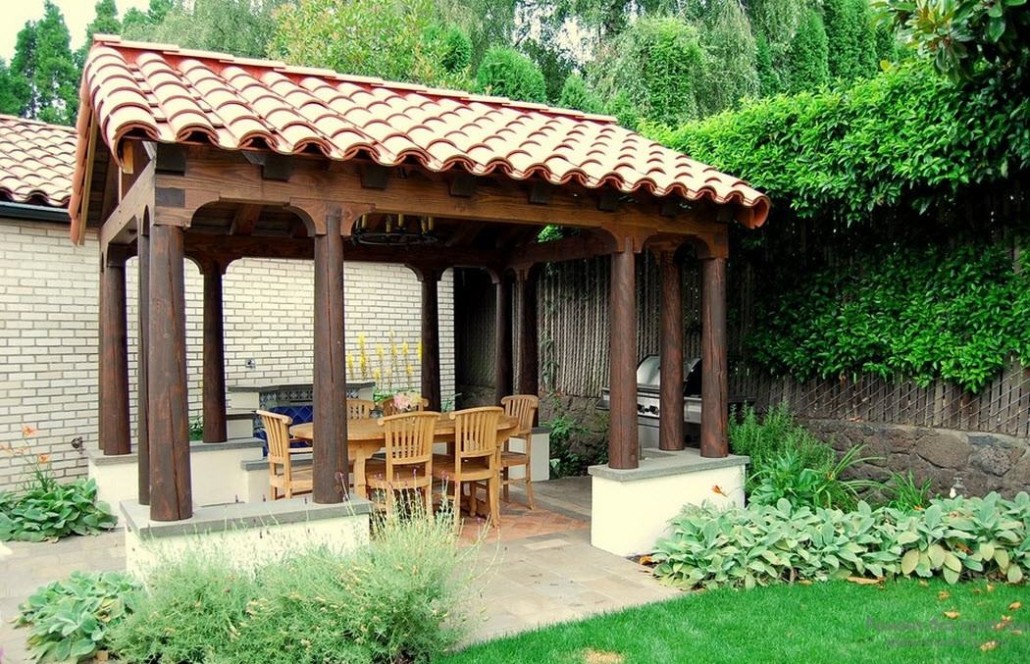 Беседка-барбекю обычно занимает значительную площадь, так как рассчитана на приём больших компаний