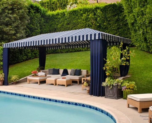 Представленные изображения поста о дизайне стационарных беседок снабжены краткими комментариями, к которым вы обязательно добавите свои, когда мечта и фантазия, объединившись с финансовыми возможностями, станут реальностью, и вы сможете снять на камеру совершенное творение рук своих (или нанятых исполнителей-профессионалов), а после поделиться фотографиями с нами и со всем миром.