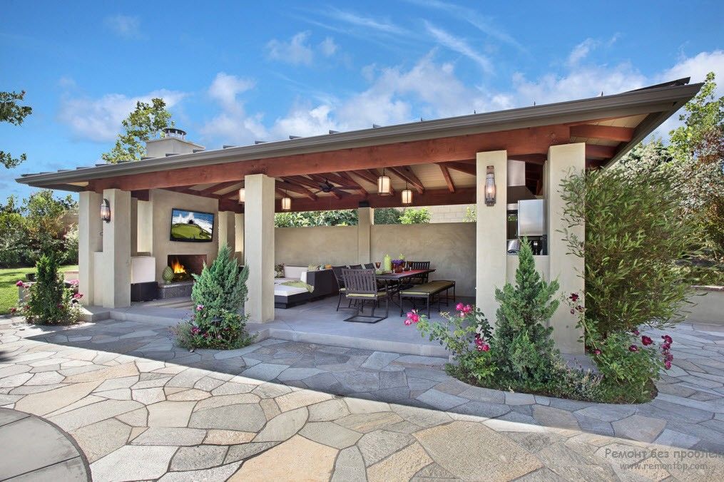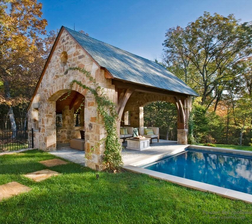 В последнее время к некоторым типам беседок вместо «лёгкое сооружение» вполне применимо определение «монументальное». И в этом случае речь идёт не о месте для созерцания и уединения, а, наоборот, о приёме многочисленной компании с целью развлечь и хорошенько угостить и… поразить воображение.