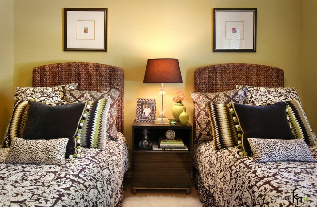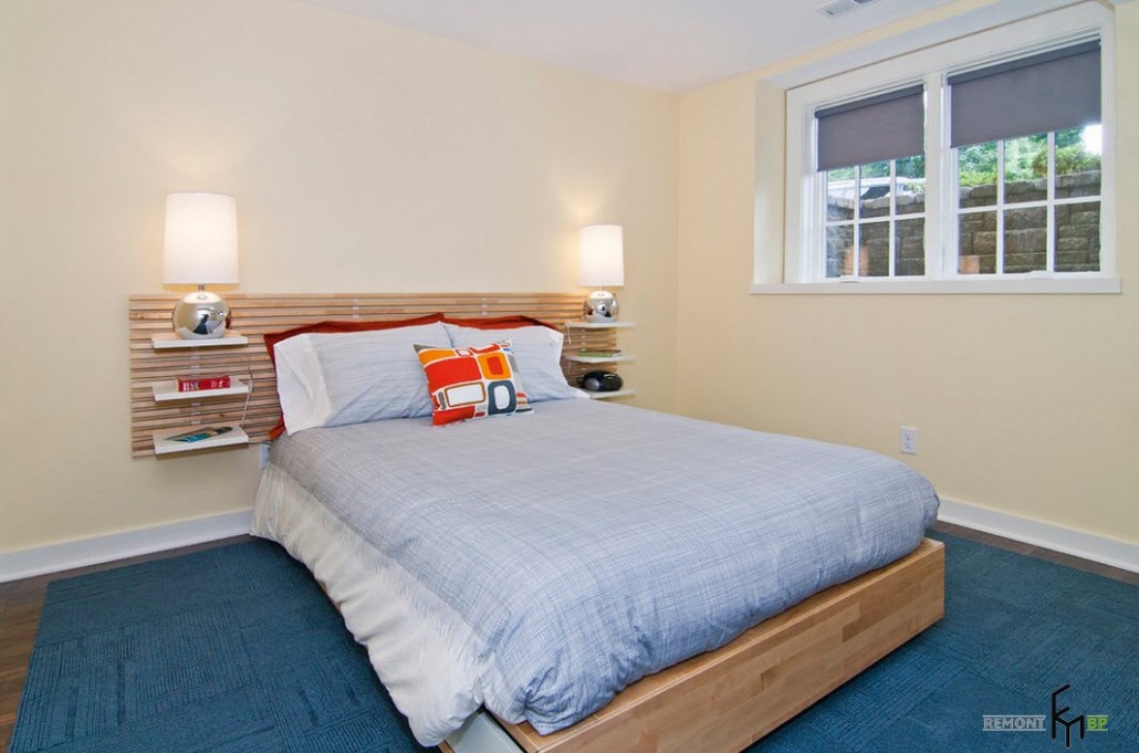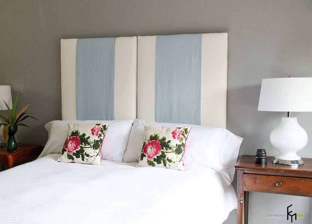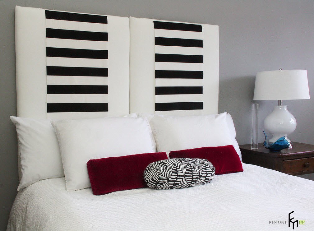 Проще всего изготовить самим мягкое изголовье. Обычно на лист ДСП наклеивают поролон, обшитый тканью. Дополнительная отделка изголовья контрастной тканью – очень практичный вариант, т.к. текстильную дорожку всегда можно заменить, тем самым внести разнообразие в интерьер: