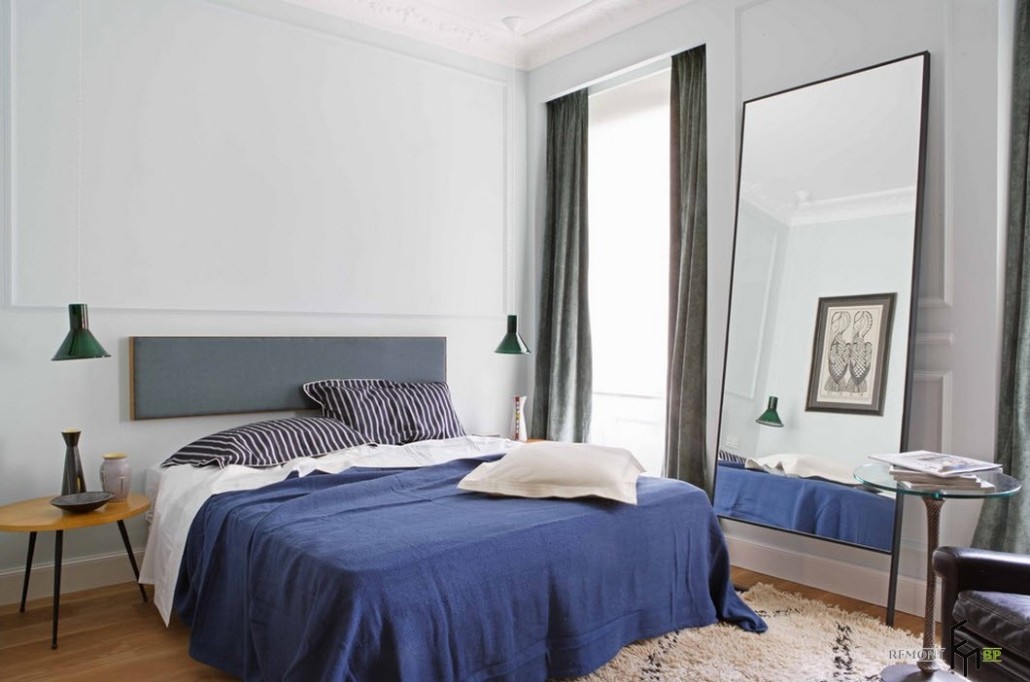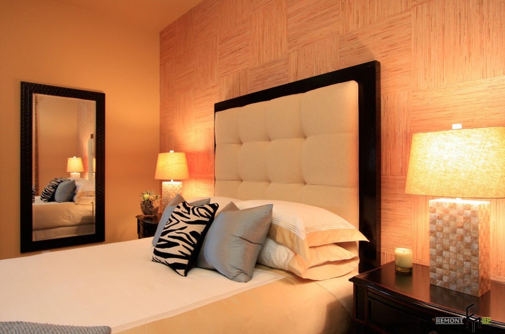 Зеркало, вмонтированное в панель изголовья не только способ декора кровати, но и возможность создать различные визуальные эффекты в спальне: