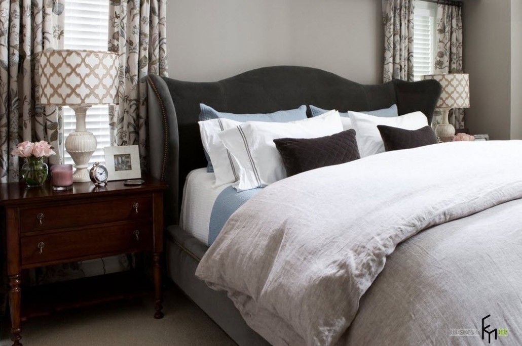 В классическом интерьере спальни органично будут смотреться мягкие изголовья простых традиционных форм. Одно непременное условие – эта часть кровати должна быть достаточно высокой: