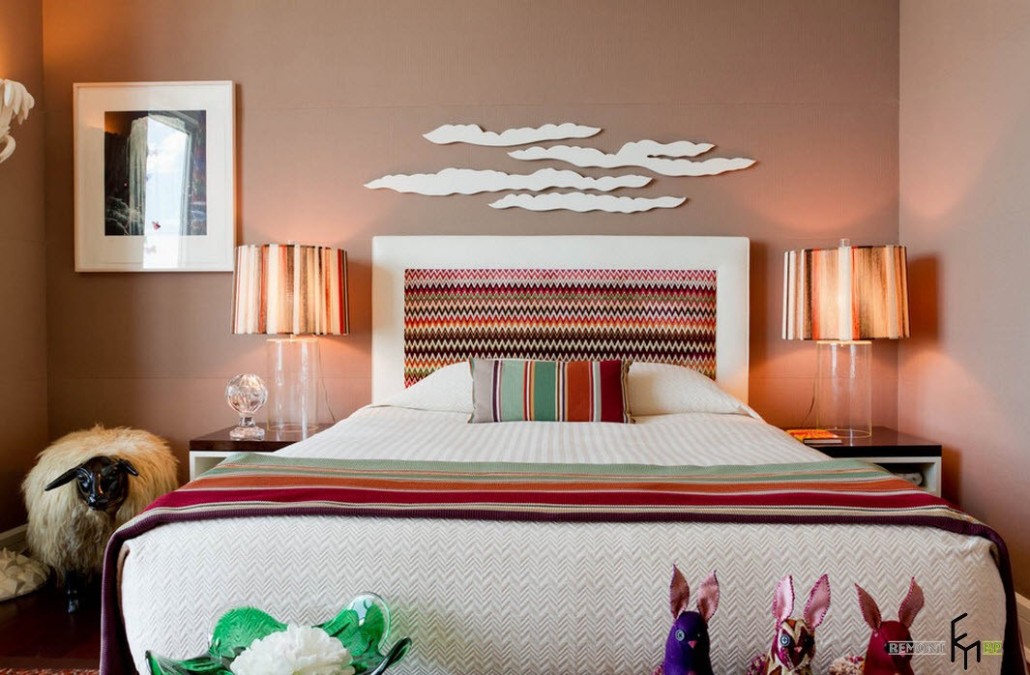 Любителей экстравагантности по достоинству оценят такой проект оформления спальни и изголовья кровати, как эклектика. Это простор для полета фантазий и творчества.