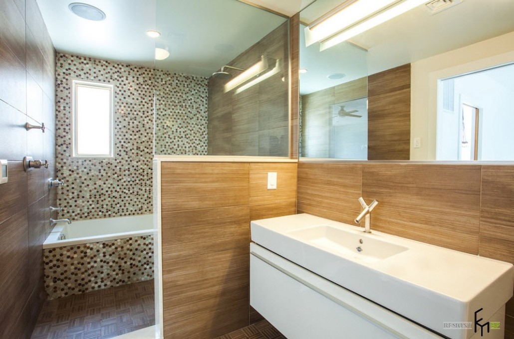 Очень рациональное решение – встроить умывальник в нише. Прямоугольная модель прекрасно подойдет для такого расположения: