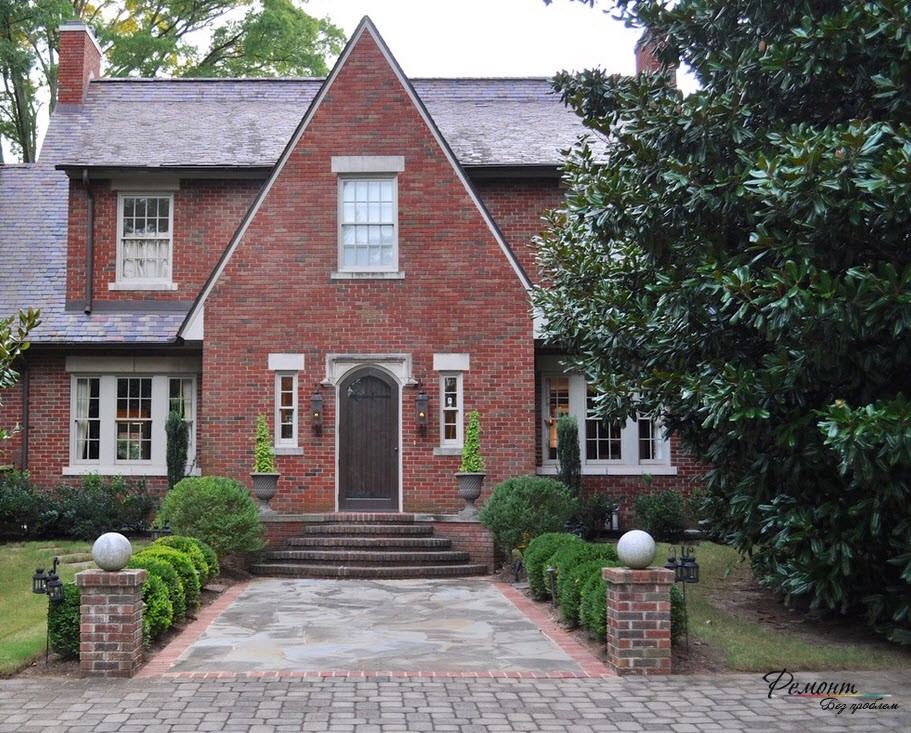 Следует также помнить, что для оформления оригинально экстерьера недостаточно возвести лишь красивый кирпичный дом. Для того чтобы весь участок вместе со строением выглядел ухоженным и грамотно оформленным также следует позаботиться о прилегающей к дому территории и подобрать к нему подходящий вариант ландшафтного дизайна.