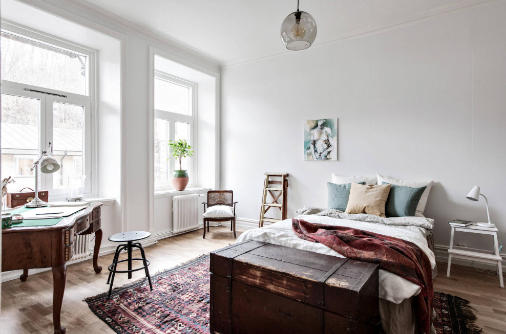 Но спальня в стиле эклектика – непростая задача даже для опытного дизайнера, не говоря уже о новичке в сфере оформления жилых пространств. В особенности это касается малых и средних по площади комнат, в которых очень легко «скатиться» от оригинального дизайна к просто захламленному красивыми предметами помещению, не имеющему общей концепции в оформлении.
