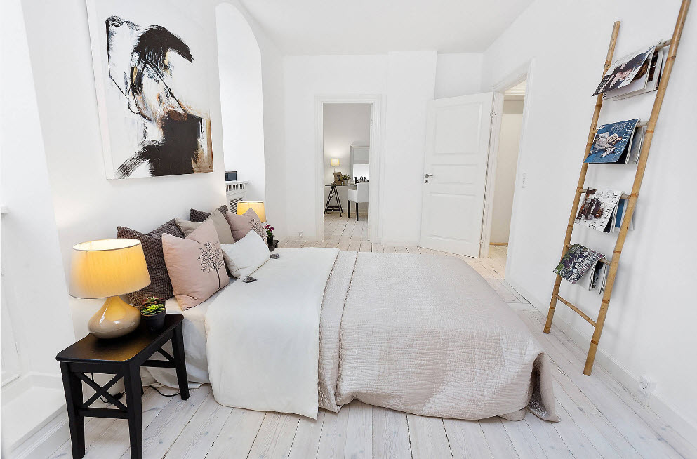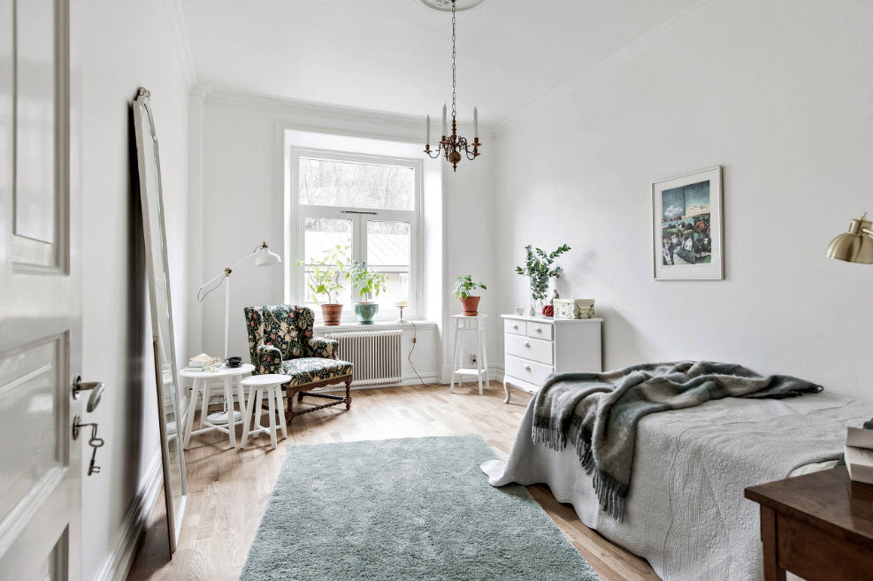 Скандинавский стиль «немногословен», но при этом обладает особенной теплотой. Сложно поверить с первого взгляда в то, что абсолютно комната с белоснежной отделкой может быть невероятно уютной. Преимущество скандинавской стилистики в том, что для использования этого стилистического направления можно использовать отделочные материалы и мебель массового производства, но в итоге все равно получать уникальные дизайн-проекты.