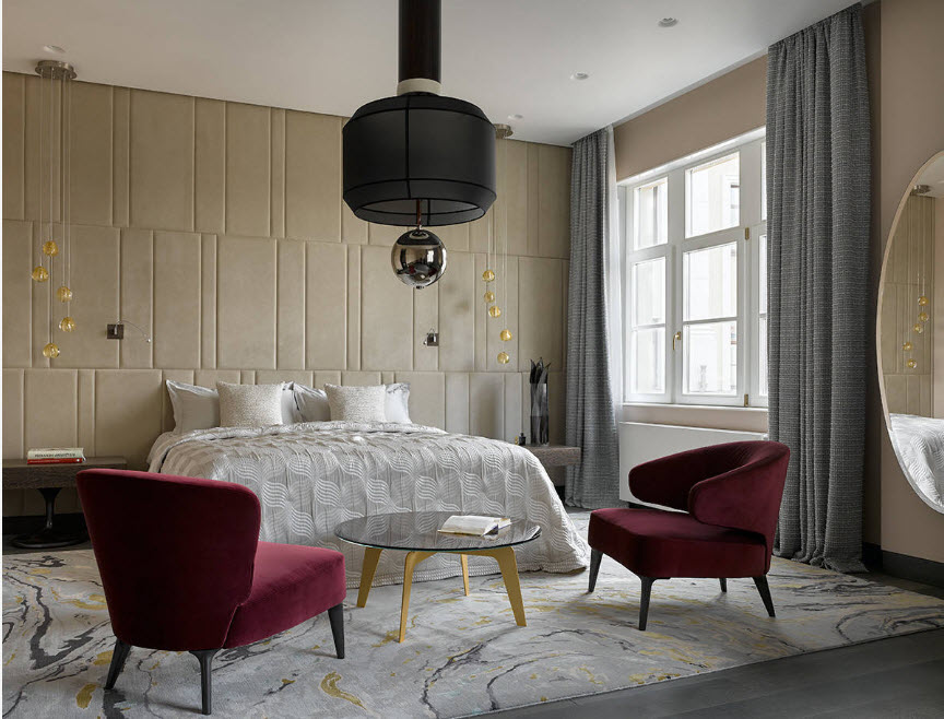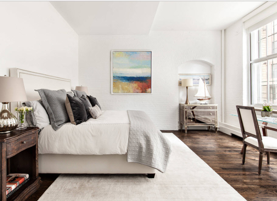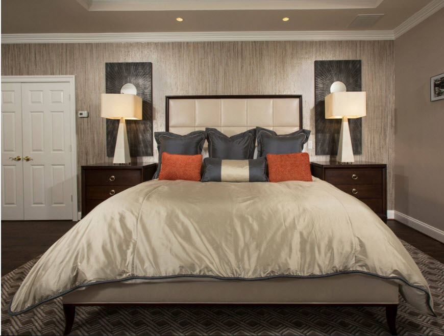 Современная стилистика акцентирует внимание на простых и практичных решениях – отделка не стала исключением. Даже в спальне, в помещении, где поверхности подвергаются наименьшему механическому воздействию, на них не оказывает влияние перепады температур или высокая влажность, дизайнеры предлагают использовать средние по стоимости, но практичные с точки зрения эксплуатации отделочные материалы. Но, безусловно, они не должны причинять вред человеку или окружающей среде.