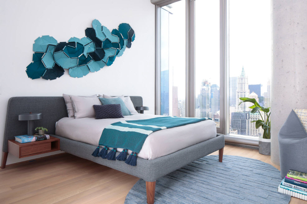 Уже много сезонов подряд актуальным остается использованием такого дизайнерского приема, как создание акцентной стены в помещении. В гостиной и спальне, такое оформление применяется, пожалуй, чаще всего. Выделение одной из стен при помощи цвета и фактуры (иногда по средствам комбинирования отделочных материалов) позволяет не только создать цветовое разнообразие в образе помещения, но и подчеркнуть геометрию комнаты, направить внимание на центральный элемент интерьера, ведь чаще всего выделению подвергается стена за изголовьем кровати.