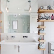 Места стыков с сантехникой и углы необходимо обработать герметиком. Декоративный эффект можно усилить, используя специальные уголки и плинтуса, которые можно найти в тех же магазинах, где приобретались и сами панели. Таким материалом можно отделать потолок и встроить в него светильники. Такая техника оформления интерьера ванной комнаты подарит практичное и красивое помещение, которое не потребует дополнительных расходов.