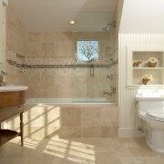 Наклеивание кафеля в ванной комнате почти не отличается от облицовывания других помещений. В этом заключается универсальность такого материала – его можно применять для любых помещений.