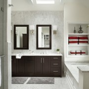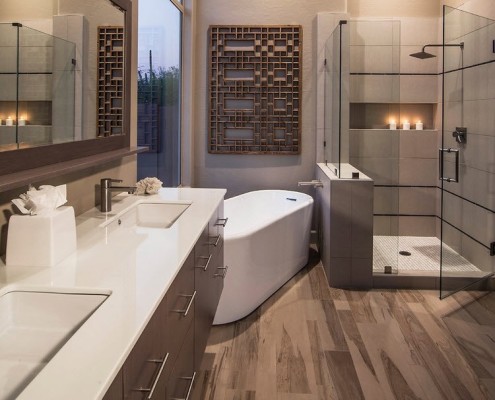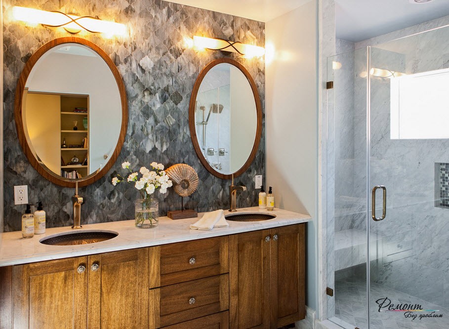 Разнообразие материалов, адаптированных для сложных условий ванной комнаты, очень велико: