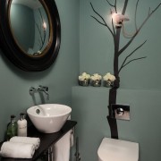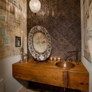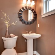 Размеры и форму зеркала продиктует стиль и планировка, поэтому остановимся на обрамлении. Дорогая рама рифмуется лишь с английской классикой или рококо. При этом второй стиль нечасто встретишь в дизайне туалета, но право на креатив остается у каждого. При демократичном подходе допустимо получить своеобразный фьюжн. В определенном направлении форма обязана безошибочно совпадать с требованием стиля.