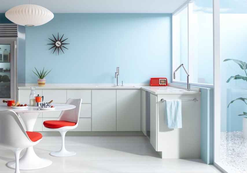 Для барной стойки выпускают кресла тюльпаны на высокой ножке. Они также могут быть выдвижными и складываемыми обратно. Кресла тюльпаны хорошо сочетаются с пристенной скамьей.