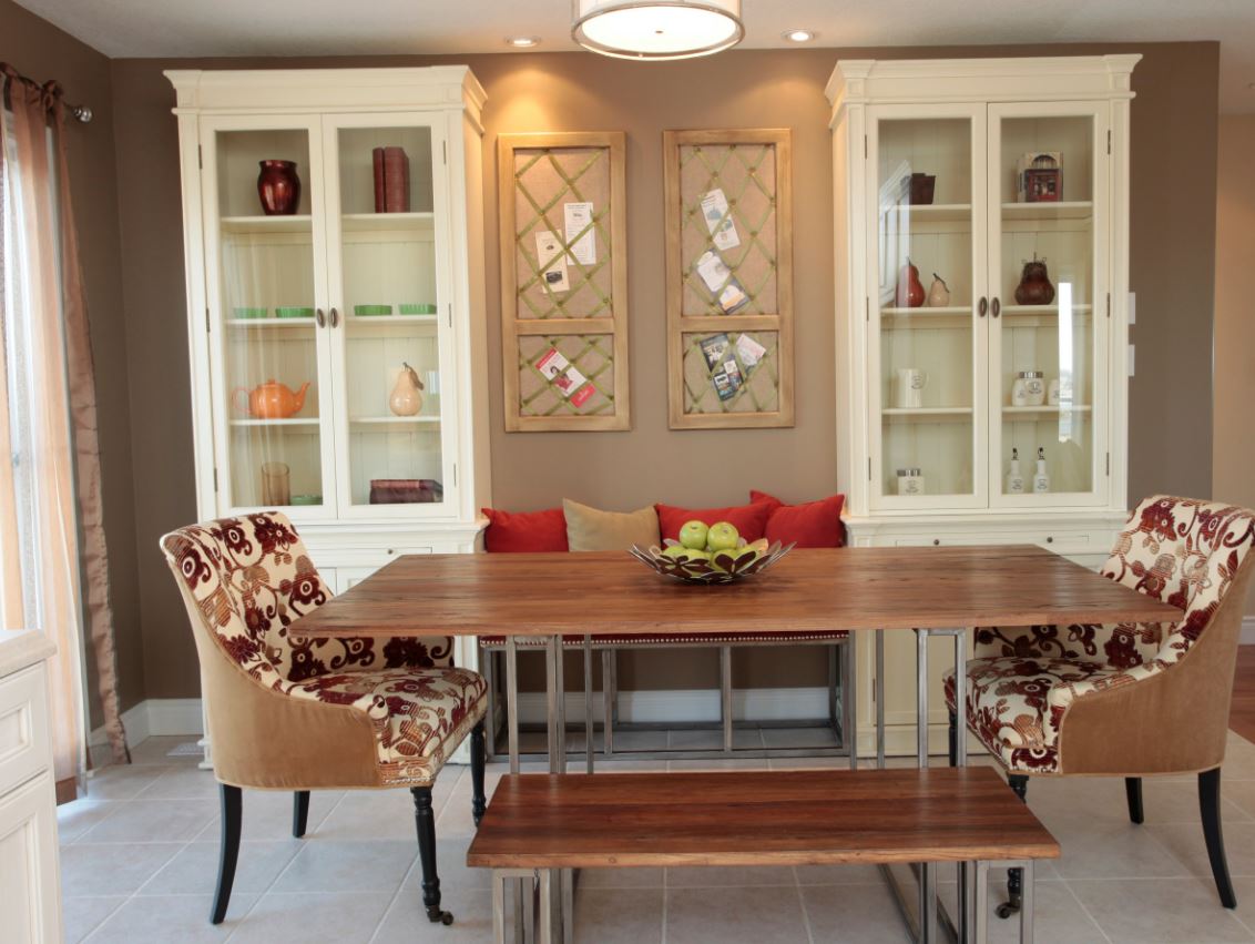 Изделия идеально подходят для круглых столов. Особенно когда конструкция моделей предполагает вращение. Их даже допустимо чередовать с обычными стульями, даже если те выполнены из разных материалов.