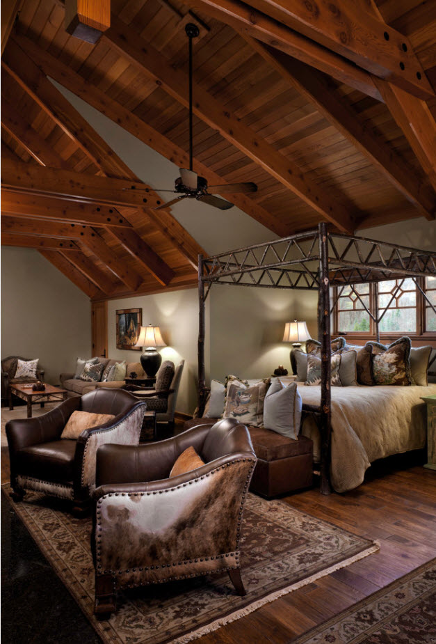 Кожаная обивка кресел неспроста является одной из самых практичных. Но не каждый интерьер спальни сможет органично «принять» натуральную или искусственную кожу. Все же, кресла с кожаной обивкой – прерогатива интерьера гостиной. В спальне такие модели будут смотреться органично, если для кожаной обивки были выбраны светлые тона. Или сам интерьер выдержан в оригинальной стилистике – кантри, эклектика, авангард.