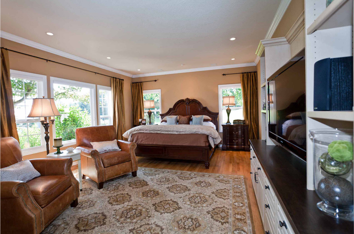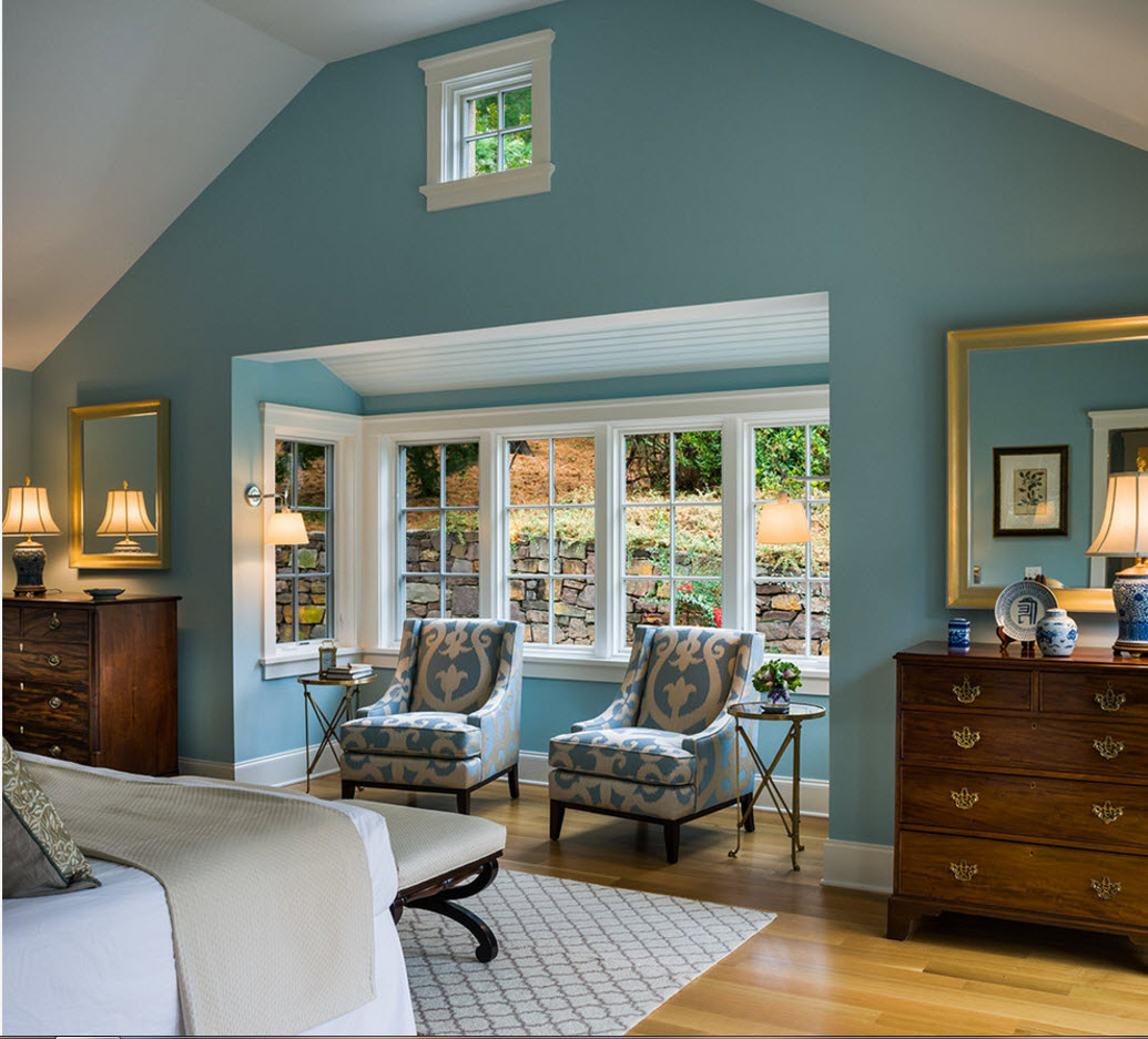 Если в вашей спальне есть эркер, то не организовать в нем зону для отдыха с кофе в удобных мягких креслах было бы непростительно. Какой бы не была форма эркера – подобрать подходящие кресла не составит особого труда. Мебельный рынок насыщен моделями самых разных размеров и конфигураций. Вам лишь нужно сделать правильный выбор цветового и фактурного решения.