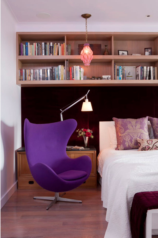 Еще одно не менее популярное кресло, которое датский дизайнер Эмиль Арне Якобсен спроектировал специально для холлов больших отелей, получило свое название за сходство с яичной скорлупой – Egg. Кресло имеет тканевую или кожаную обивку и очень часто исполняется в ярком цвете. Вам будет удобно отдыхать, читать и даже подремывать в этой «яичной скорлупе». А яркий и оригинальный дизайн обеспечит вашей спальне нотки креатива, дизайнерской мысли с практической подоплекой.