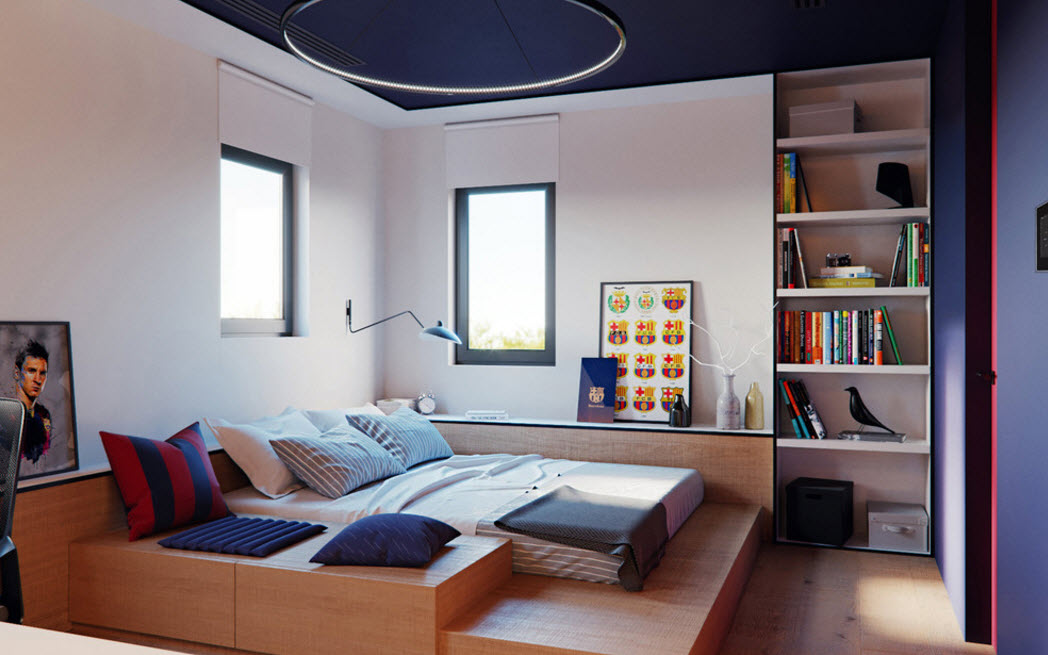 Вне зависимости от выбора типа сооружения спального места на возвышении, такие конструкции имеют высоту от 20 до 50 см – все зависит от дизайна и функциональной подоплеки. Такие предметы интерьер как кровати-подиумы могут представлять собой целые комплексы из различных составляющих – спальное место плавно переходит в рабочее, совмещает в себе зону отдыха и места для сидения, вся конструкция оснащается системами хранения, встраивается подсветка, внутри короба прячутся коммуникации.