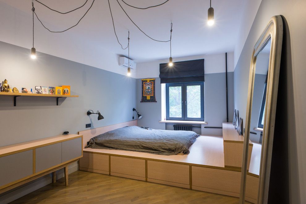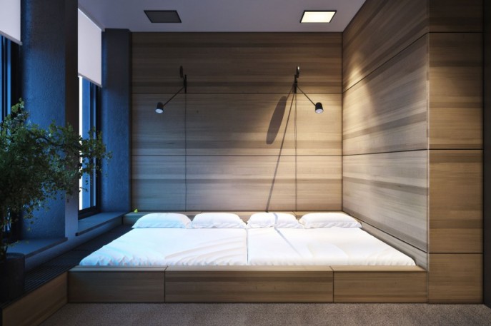 Идея обустройства спального места на возвышении зародилась в Японии. В далекие времена японцы использовали пространство под матрасом для хранения одежды, посуды, оружия, различных ценных вещей. В наши дни кровать-подиум также можно использовать с целью обустройства систем хранения. Но на этом ее функции не заканчиваются – спальное место на возвышении может выступать в качестве зонирующего элемента, визуально менять форму и размер помещения, реорганизовывать пространство и просто служить главным элементом, изюминкой интерьера. Если вы планируете изготовление подиума или приобретение готового решения по обустройству спального места на возвышении, то наша масштабная подборка интересных фото может помочь вам осуществить непростой выбор и вдохновиться дизайнерскими идеями.