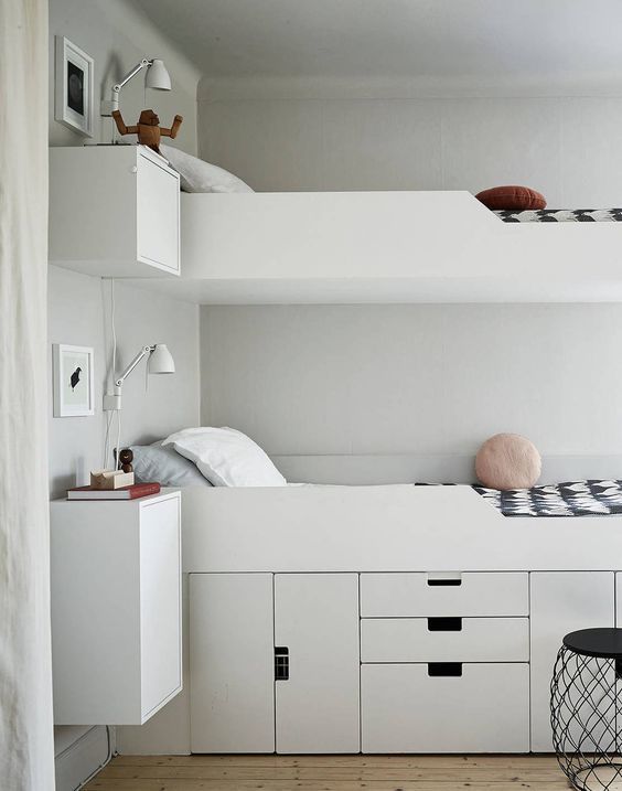- в детской комнате необходимо оставить как можно больше свободного пространства для активных игр, но при этом необходимо расположить одно или два спальных места и несколько систем хранения.