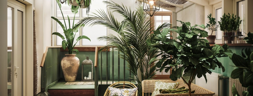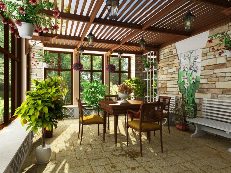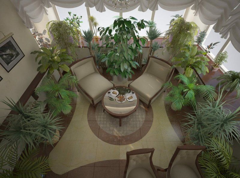 - Балкон, зимний сад или веранда: превратите эти помещения в свежий тропический уголок с помощью крупных растений.
