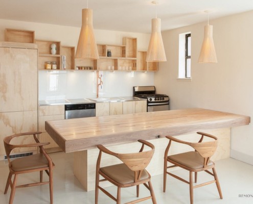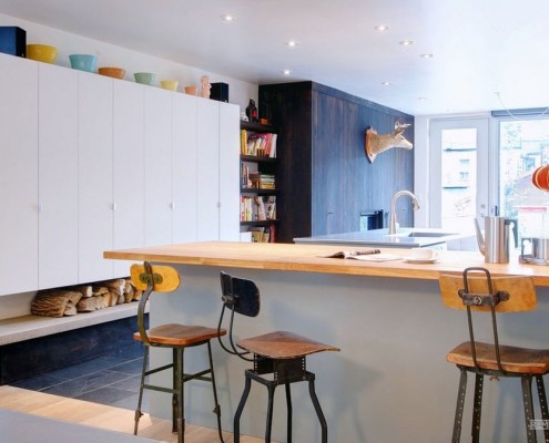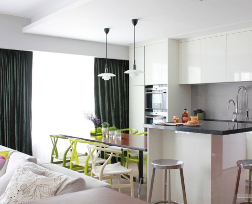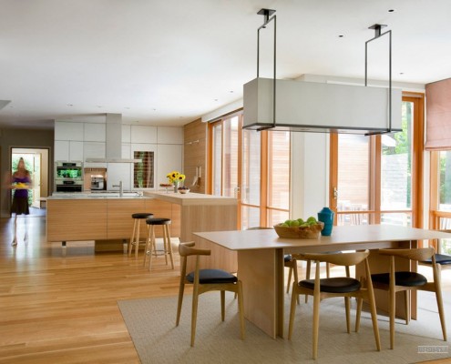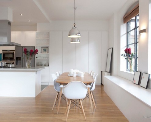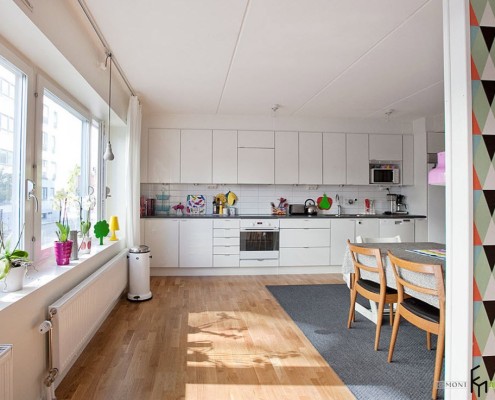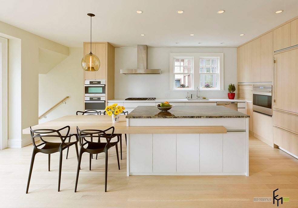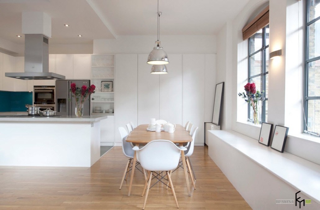 В скандинавских кухнях традиционно в одном помещении находятся рабочая зона и столовая, иногда выполняющая функцию гостиной: