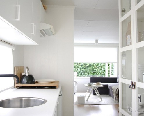 В большинстве случаев в кухнях скандинавского кантри окна не декорируют традиционными портьерами. Римские или рулонные шторы нашли себе отличное применение в это стиле: