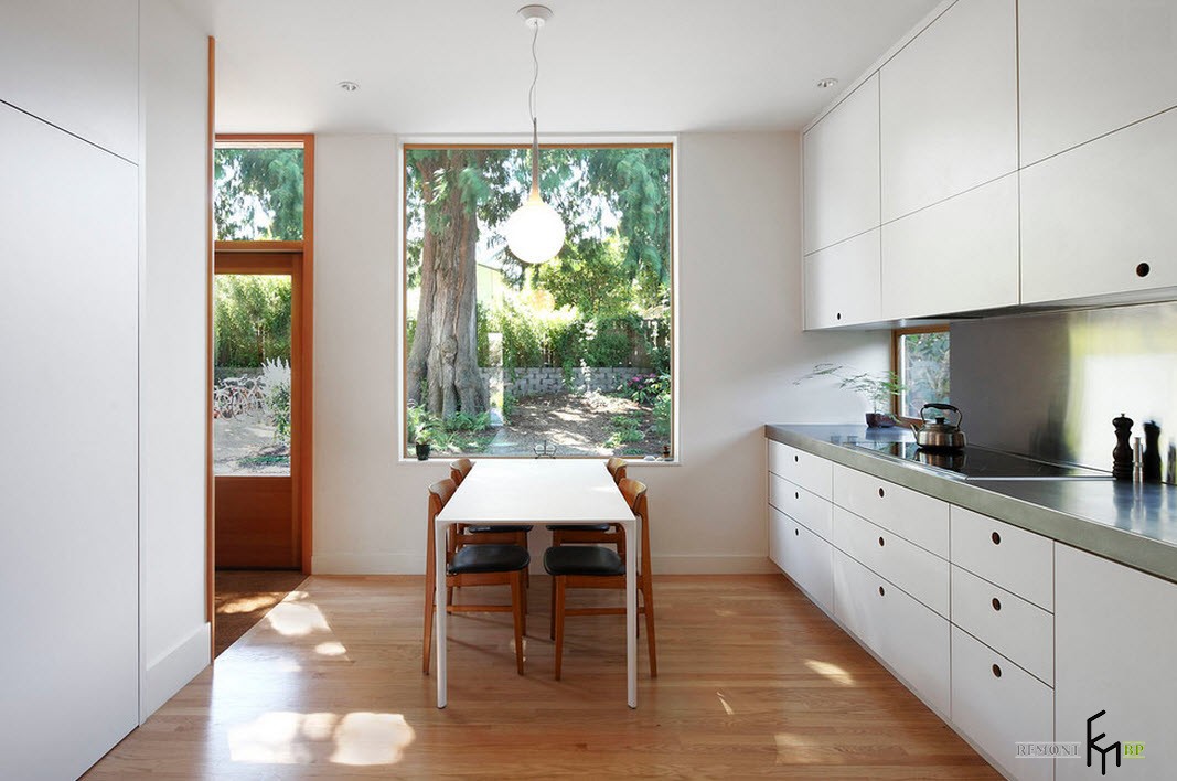Панорамные окна очень часто встречаются именно в кухнях. Они создают прекрасное настроение от замечательных пейзажей: