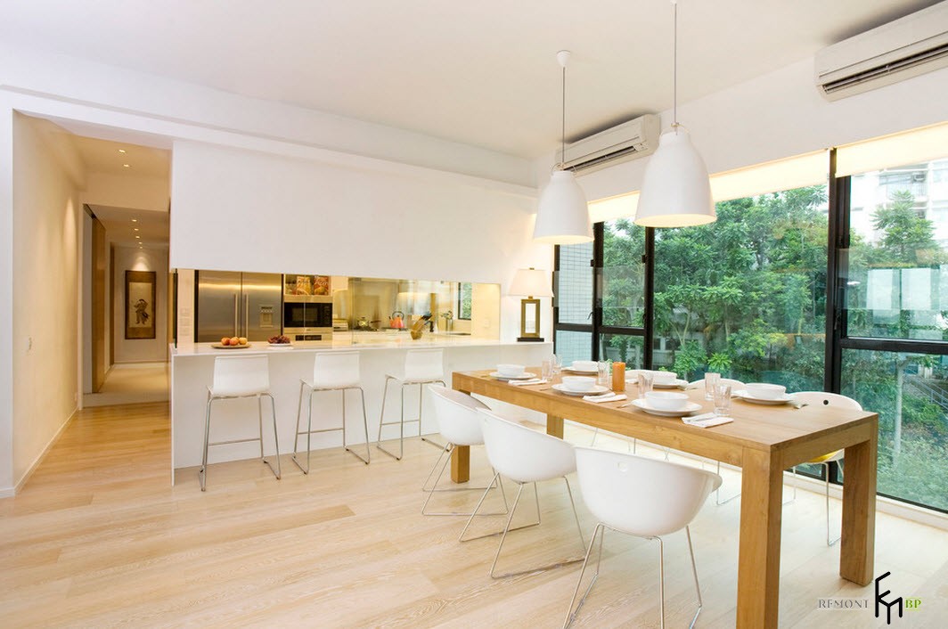 Всегда своеобразно выглядят интерьеры, в которых находят воплощение несколько стилей. Эксцентричный интерьер, где сочетаются элементы хай-тека и природное тепло Скандинавии, безусловно, найдет множество поклонников: