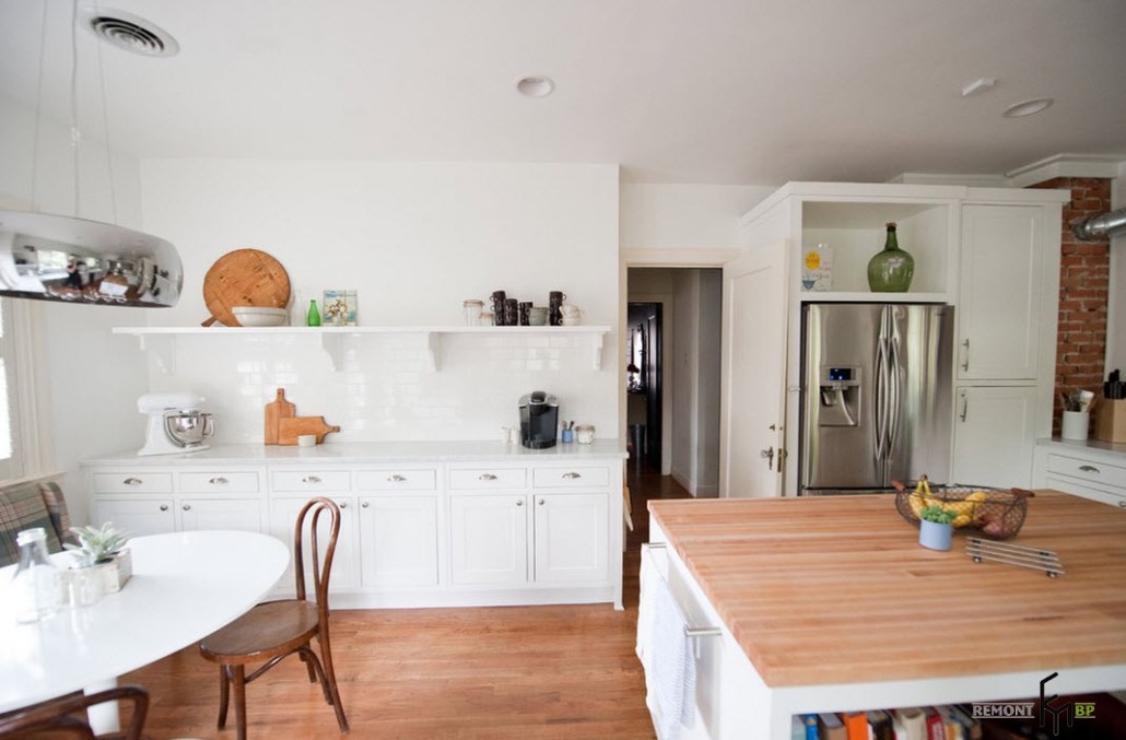 Доски можно покрыть краской, это никак не нарушит стиль кухни:
