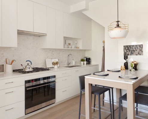 Очень часто на скандинавских кухнях можно увидеть живописные полотна, т.к. жители этих стран очень трепетно относятся ко всем видам искусства. На светлых стенах очень эффектно смотрятся портреты или абстрактные холсты: