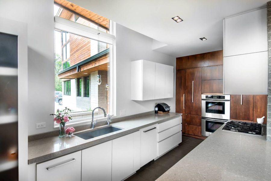 Когда дело доходит до мебели, вы можете выбирать между готовыми наборами шкафов или заказывать конструкции по размеру, индивидуально отобранные для вашей кухни 16 кв. м. Сборная мебель обычно дешевле и лучше всего работает в больших комнатах с типичной формой. Существуют также комплекты самосборки, которые можно легко демонтировать и перемещать в другую плоскость при перестановке. Такие гарнитуры предлагают некоторые изменения, но это не неограниченные возможности. Поэтому, если наша кухня 16 кв. м необычной формы, то лучше выбирать мебель по размеру. Фронты кухонных шкафов также могут быть изготовлены из многих материалов с различным внешним видом и свойствами. Наиболее распространенными являются фасады МДФ, покрытые фольгой, меламином или краской. Другим популярным и недорогим материалом является ДСП . Деревянные фасады эффективны и долговечны. Их цена, внешний вид и свойства зависят от типа древесины, поэтому рекомендуется выбирать более твердые и влагостойкие типы, которые не будут деформироваться. Стеклянные фасады становятся все более популярными, но скорее только в верхних шкафах. Они выглядят впечатляюще и подходят практически к любому стилю.