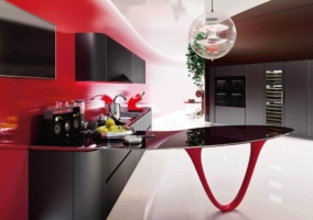 Сочетание яркого бирюзового и черного оттенка — чрезвычайно модная комбинация. Черные и бирюзовые цвета придают домашней кухне немного драматизма и изысканной элегантности. Эффект может быть усилен при использовании глянцевых фасадов вместо матовых шкафов.