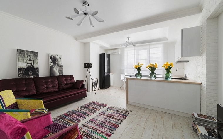 Очаровательный дизайн кухни-гостиной 25 кв. м