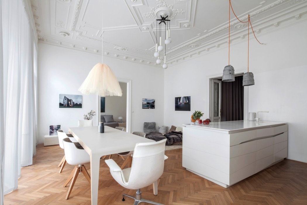Наконец, чтобы подчеркнуть разделение пространств и создать красивое украшение кухни, открытой для гостиной, вы можете подчеркнуть разделение между различными частями помещения посредством украшения стены и освещения. Поэкспериментируйте с подвесками, чтобы выделить силуэт вашего кухонного острова, установите светлые полоски на полу открытой кухни, размещенной на платформе. Подумайте об украшении торшерами для чтения в углу и прикроватными лампами для ваших журнальных столиков и консолей.