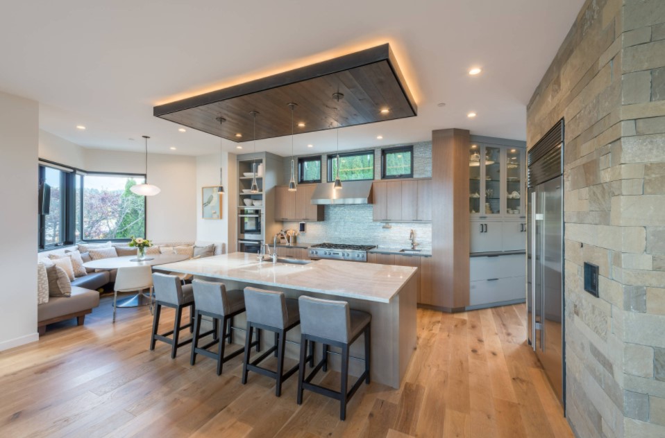 Эркер – интересный архитектурный элемент, который обязательно стоит оформить в оригинальном, комфортном и стильном дизайне интерьера кухни, с обязательным удобным и гармоничным зонированием.