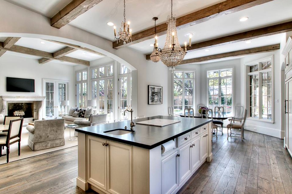 Объединение двух комнат в одну – достаточно частое эргономичное решение. Гостиную и кухню объединяют и с целью экономии пространства, и с целью создания целостного интерьера, связанного с процессом приготовления, приема пищи, полноценного отдыха после всех действий.