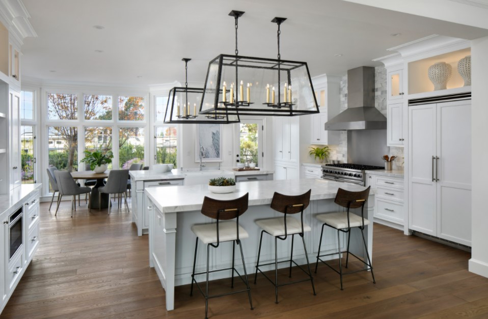 Освещение в кухне с эркером