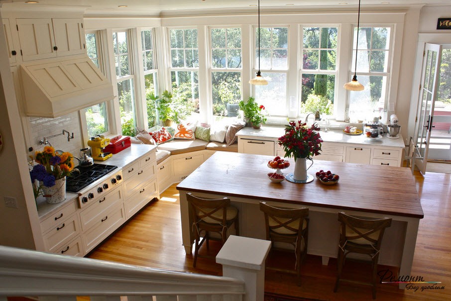 Кухня с островком – отличное решение для просторного помещения. Для того чтобы не возникало проблем с перемещением, остров рекомендуется устанавливать на кухне, площадью не менее пятнадцати квадратных метров. В малогабаритном помещении тоже можно расположить островок, но в этом случае свободного пространства практически не останется.