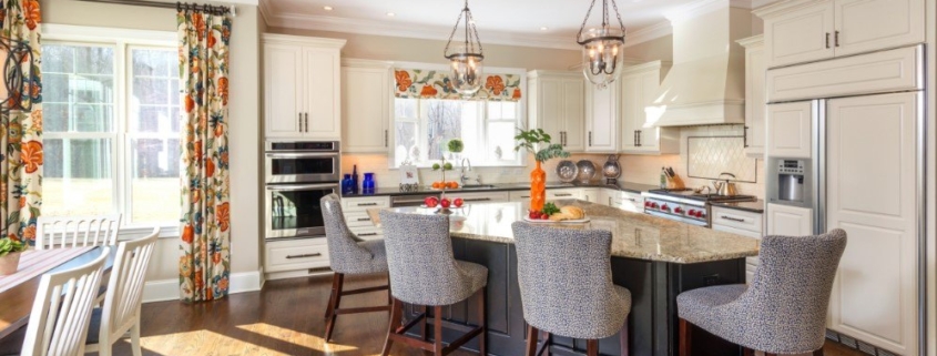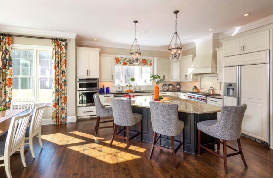 Любой интерьер преображается и начинает играть новыми красками при использовании различных аксессуаров и элементов декора. Поэтому стоит отказаться от деталей, дублирующих интерьер по цвету. Посуда, цветочные горшки, мягкие подушки на стульях, скатерть, салфетки или занавески на окнах, выполненные в контрастном бежевом, ярком оранжевом, красном, зелёном, розовом или фиолетовом цвете станут прекрасным дополнением дизайна. Не менее оригинально смотрятся в таком интерьере золотистые или серебристые дополнения.