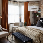 При выборе деталей и аксессуаров, расстановке ярких интерьерных акцентов ориентируемся на насыщенные шоколадный, терракотовый, черный и ярко-синий.