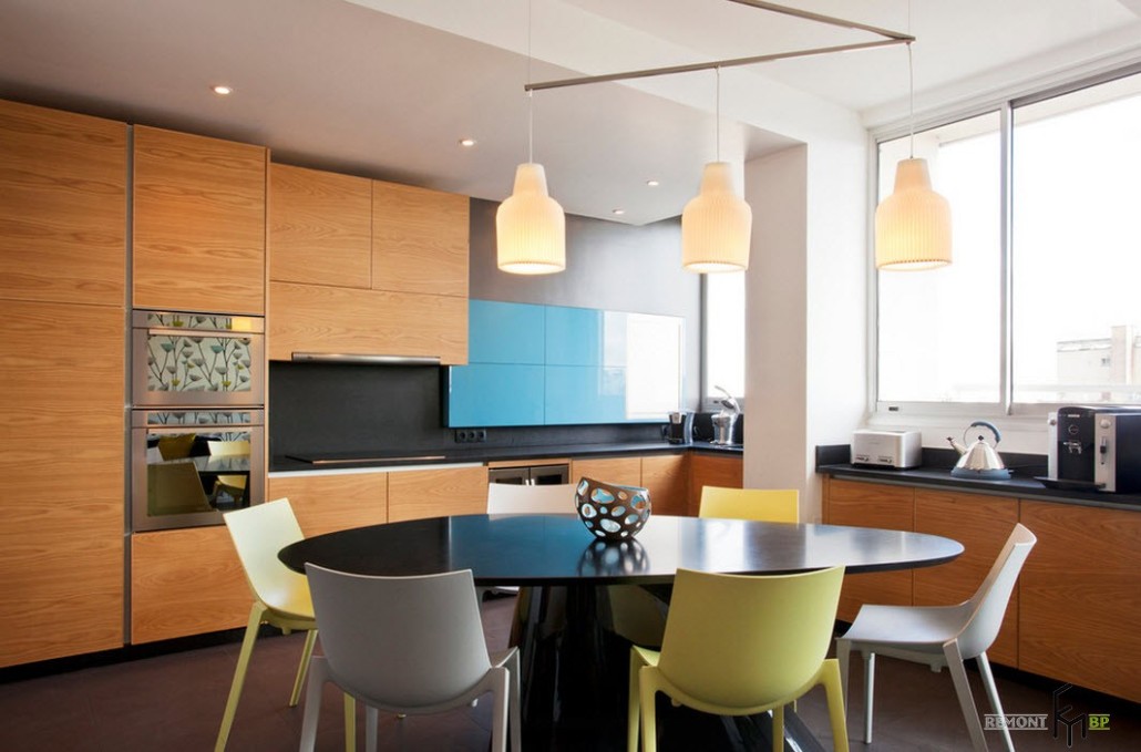 Не стоит забывать и о естественном освещении кухни. Оно должно быть умеренным. Для регулировки его интенсивности существует множество способов, естественно, современных.