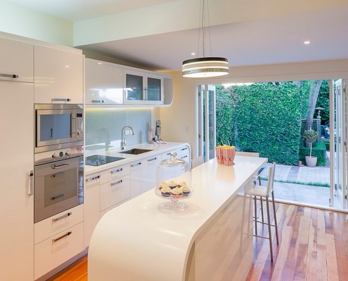 Главной особенностью кухни модерн является ее расширенная функциональность. Все в ней подчинено практичности и удобству. Тренд уже имеет свою историю и продолжает оставаться популярным и сегодня. Многофункциональность кухни модерн скрыта за фасадами навесных и напольных шкафов, так как сегодня любая современная кухня немыслима без кухонной техники. Кухня в стиле модерн – тому пример. Данному стилю характерна именно встраиваемая техника, так как свобода кухонного пространства с сохранением функциональности – превыше всего для него. Повышенная функциональность обеспечивается за счет оригинальных механизмов и кухонных приборов.