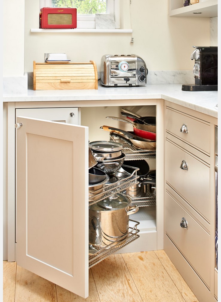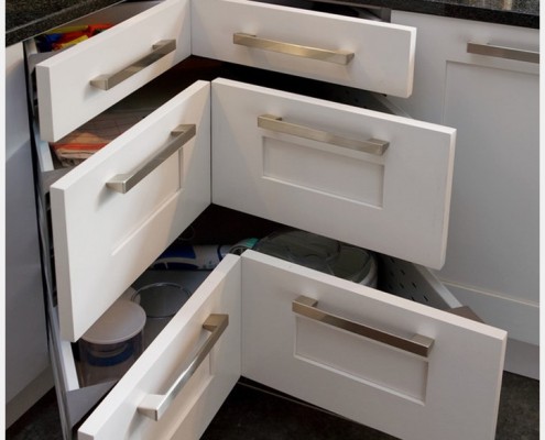 Что касается напольной мебели, то ей характерны выдвижные ящики, полки, часто имеющие оригинальный механизм их открытия. При этом бросаются в глаза их размеры, которые сильно отличаются от привычных, классических размеров. Но, как говорят женщины, места на кухне никогда не бывает много.