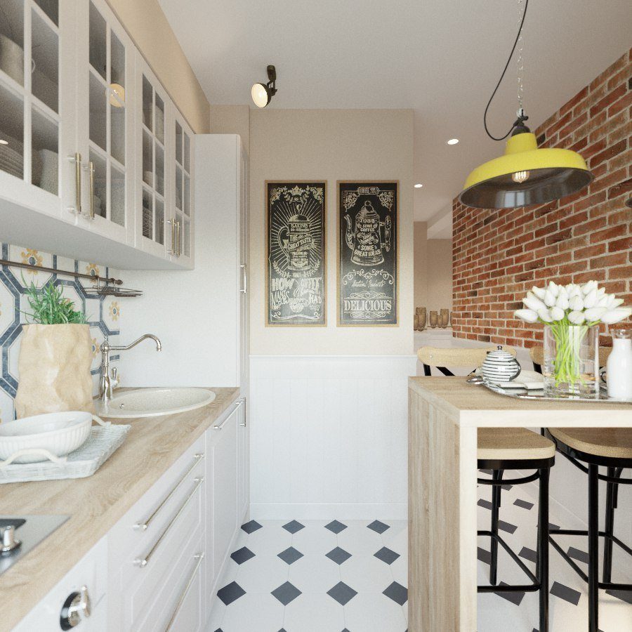 Неоспоримым преимуществом фьюжн является тот факт, что кухня в этом стиле может быть организована по очень низкой цене. Все, что вам нужно, это старая бабушкина мебель, найденная на чердаке, некоторые дополнения в виде пластиковых декоративных элементов и огромное количество фантазии. Старые шкафы можно слегка отремонтировать или просто почистить в сочетании с современными обоями с необычными узорами, добавив красочные, китчевые аксессуары, купленные за копейки. Отличным решением станет эффект кирпичной кладки. Простой минималистский стол, в свою очередь, будет хорошо смотреться со стульями времен СССР, в которых достаточно заменить только обивку. Украсьте современный постер в золотой оправе бабушкиного зеркала в стиле барокко, а на окна поставьте травы в очаровательные разноцветные горшки, которых полно в магазинах с недорогой интерьерной мебелью.
