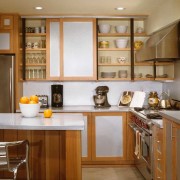 Специфика стиля — прославление простых форм и их конкретное назначение. Обязательным условием является отказ от элементов, предназначенных для оформления интерьера. Кухня должна быть функциональной и комфортной, не стоит перегружать ее различными атрибутами, которые никому не нужны. Таким образом, жить в доме намного проще, вас не будут беспокоить лишние предметы. Поверхности стен на кухне следует делать большими и гладкими, их обработка осуществляется с помощью мрамора или гранита. Вы также можете использовать деревянные панели, краски или металлические детали. Если посмотрите на дизайн кухонь в 1930-х годах, то увидите, что они сделали с цельными стеклянными блоками.