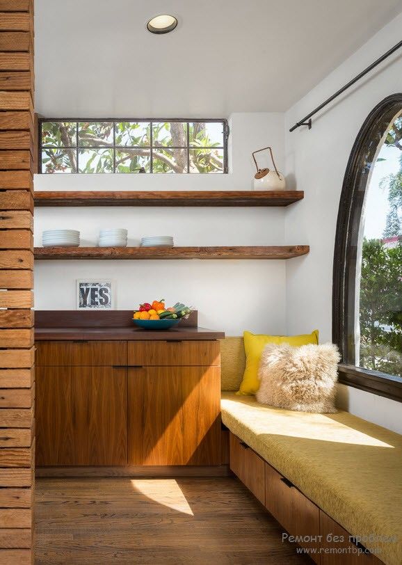 Также, если требуется сэкономить пространство, следует определиться с количеством персон, на которых должна быть рассчитана данная мебель. Отсюда и определится размер необходимого кухонного уголка. При этом, диванчики не должны мешать при работе на кухне.