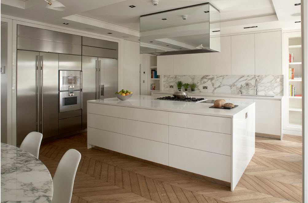 В кухне, оформленной в современном стиле или хай-тек гармонично смотрятся оригинальные островные модели с блестящими (часто хромированными) поверхностями. Круглые и овальные, ромбовидные и асимметричной формы – многообразию вариантов нет предела.